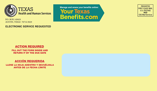 • The easiest and fastest way to stay up to date on your case is to create an online account. If you haven’t already, create an account at YourTexasBenefits.com. This will allow you to view your account information, update your contact info, submit a renewal, and respond to requests from HHSC.